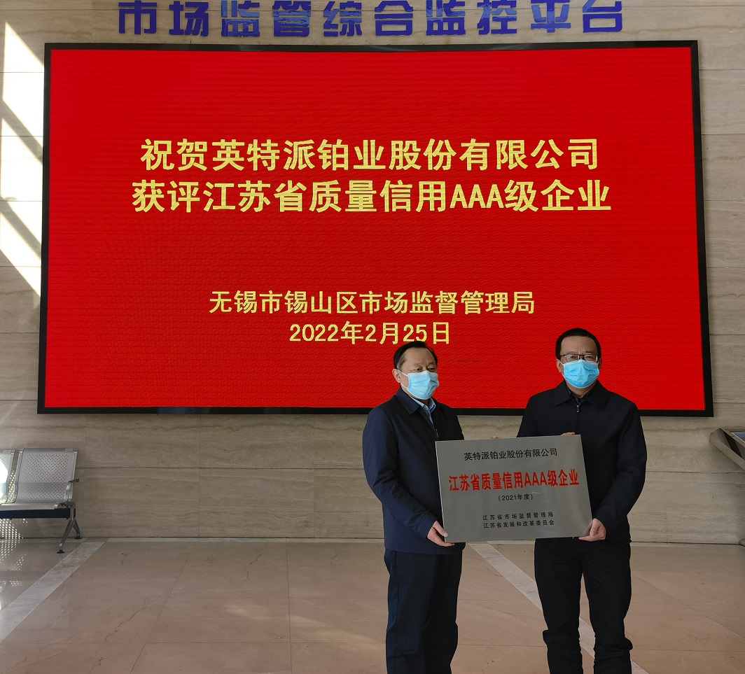 喜報——熱烈慶祝英特派鉑業股份有限公司榮獲江蘇省質量信用AAA級企業